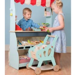 Le Toy Van Wooden Honeybake Shopping Trolley With Fabric Bag
