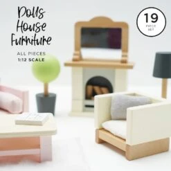 A thoughtful heirloom gift to treasure and pass down through generations. Embrace your child’s inner interior designer. This set comprises of 3 stylish, co-ordinating wooden furniture sets and accessories for endless playtime fun.