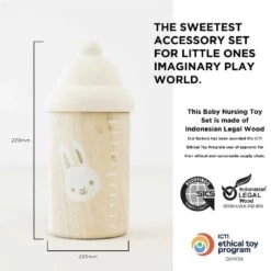 Lovingly made from a combination of natural cotton and beautiful FSC® certified natural wood solid wood. All accessories are scaled to fit dolls and soft toys of approx. 30-35cm.