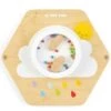 One of six wooden hexagon shaped activity ‘deco-play’ tiles tessellated like honeycombs. Each can be wall mounted, played with on a table top or even on the floor.