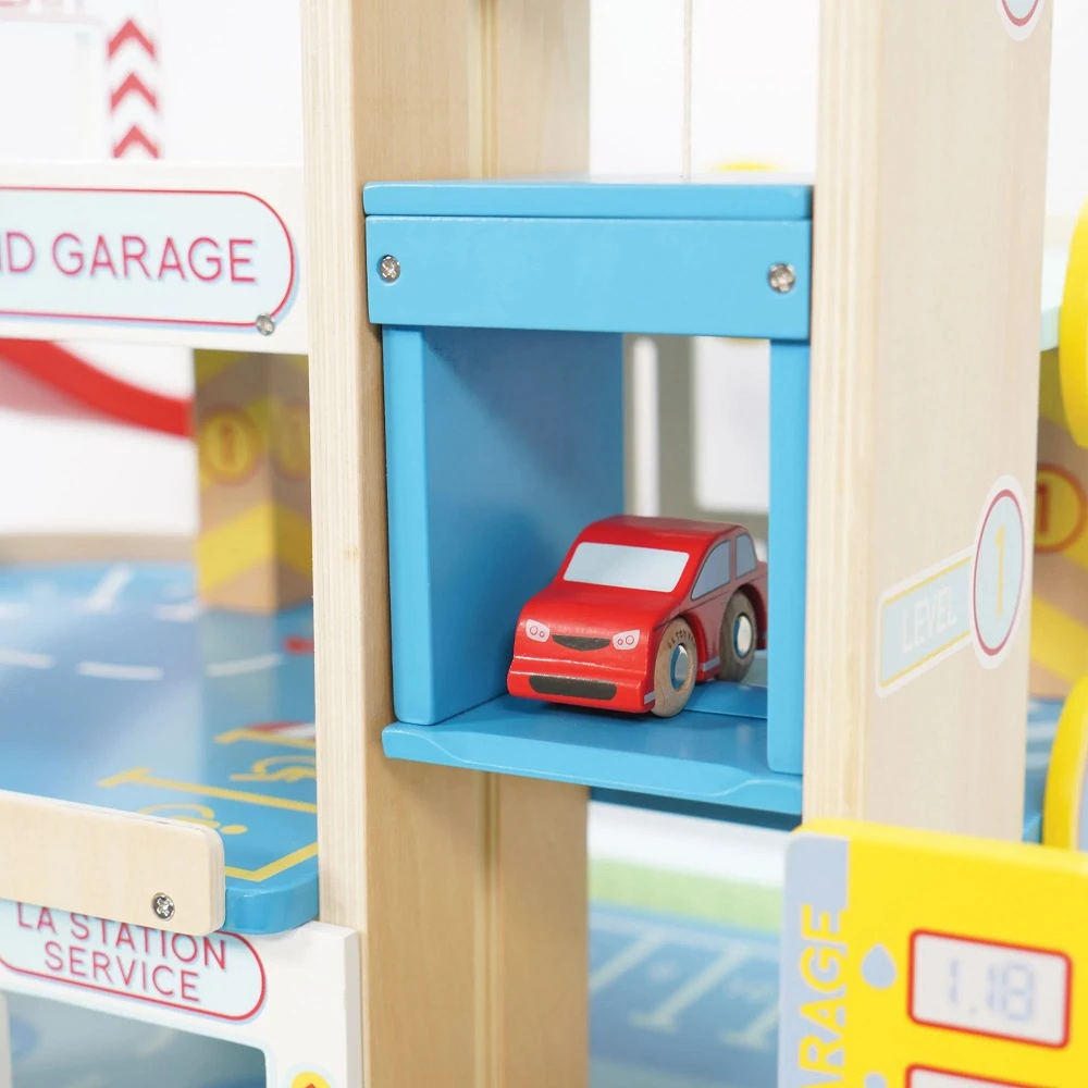 Comprising 2 spiral ramps and a working lift set over 3 levels plus a helipad, this impressive set comes complete with a car, helicopter and petrol pump. This modern take on a traditional toy is sturdy, durable and built to last using highly durable wood from sustainable sources and decorated using child safe paint, for day after day eco friendly fun.
