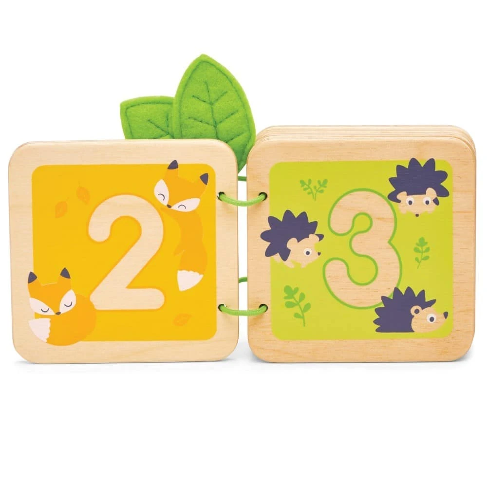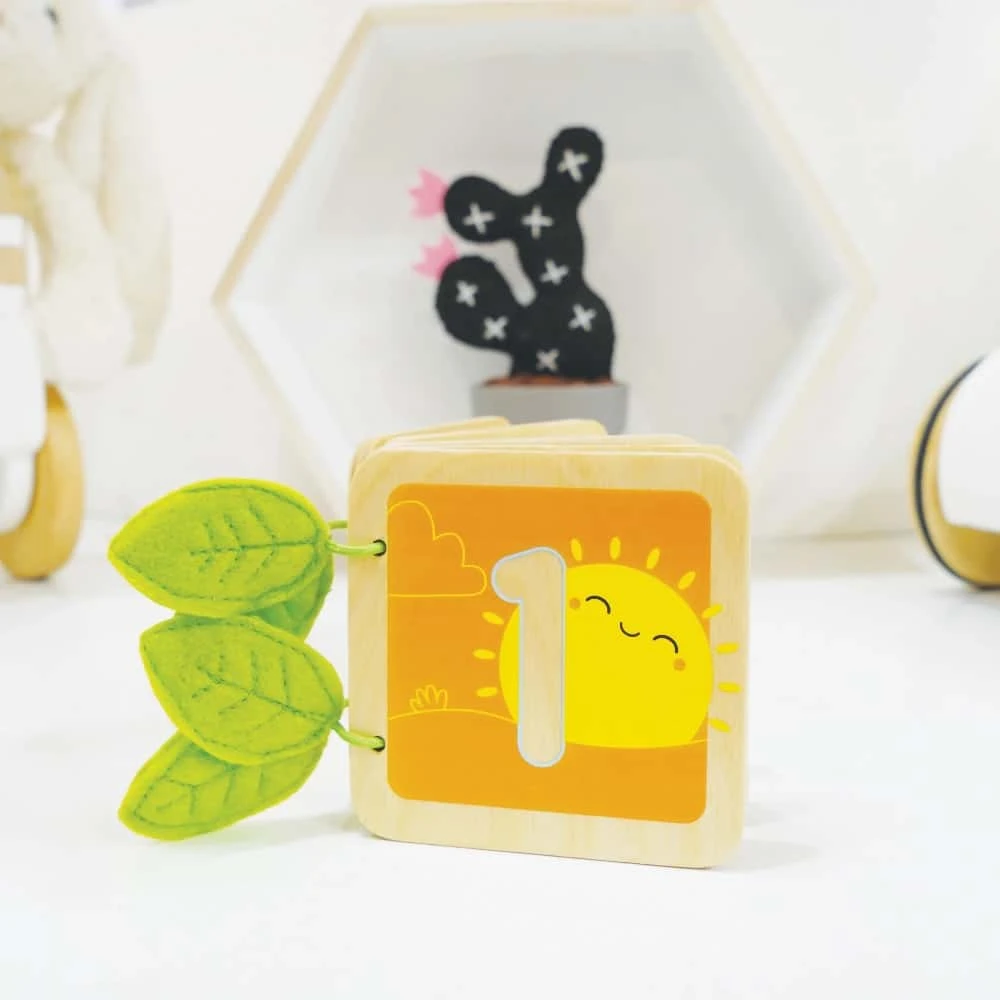 This delightful toy is designed to encourage number recognition and language development, promoting learning through play. Crafted from solid, sustainable wood and beautifully finished off, bound together by hand sewn decorative fabric leaves. Our educational toys quickly become well loved family favourites, for generations to