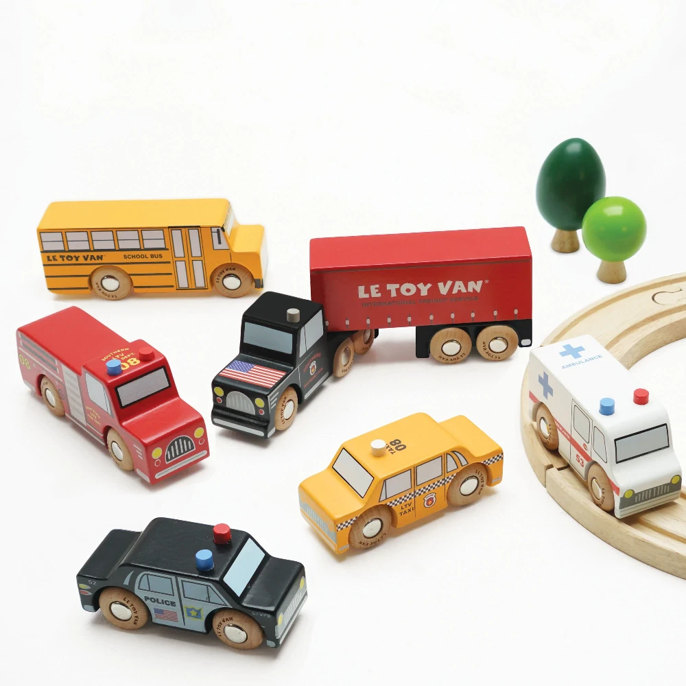 These 6 iconic American wooden Le Toy Van New York Car Set are sure to inspire early learning fun through play. A perfect gift for little car and vehicle enthusiasts, this delightful set makes a wonderful addition to any child’s imaginative play universe. Built to last, using highly durable, sustainable wood, our toys are full of eco friendly fun, designed to teach and develop through the magic of story telling.