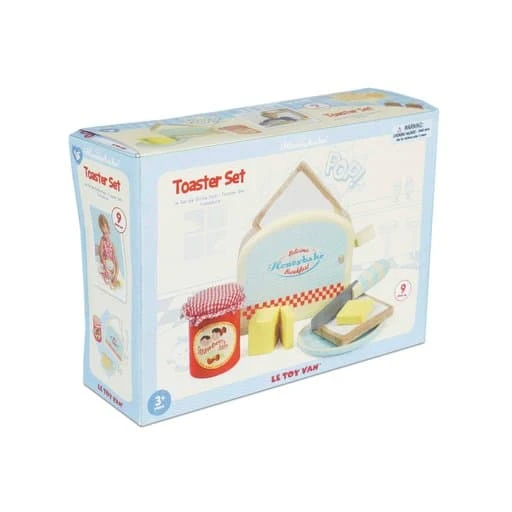 What better way to start the day than with our delightful Le Toy Van Toaster Breakfast Set. Little imaginations are sure to be inspired with this adorable role play toy. Featuring a super fun spring loaded pop-up toaster with 2 slices of toast, a butter pat with velcro, a pot of jam, a knife and a plate.