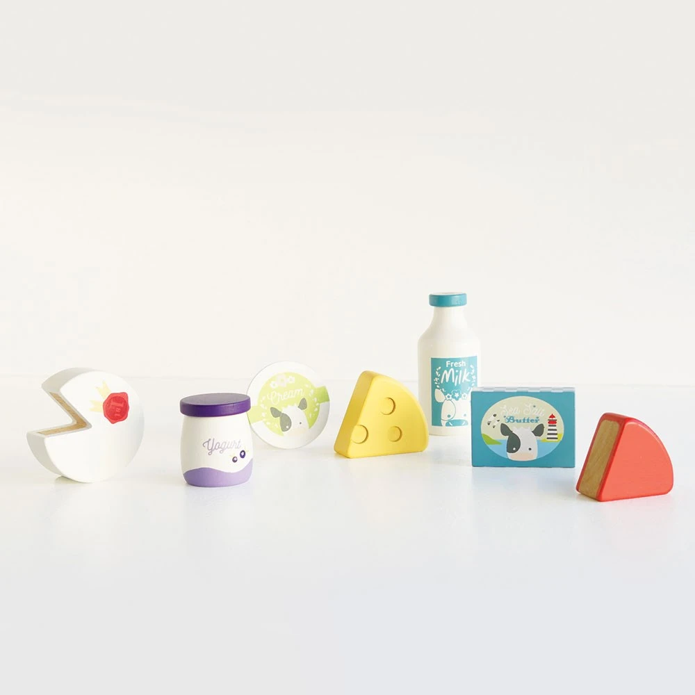 Your little cheese lover will be as quiet as a mouse when they’re playing with the Le Toy Van FSC Wooden Cheese and Dairy Crate. Perfectly proportioned to fit the HoneyBee Market Stall your little one will have hours of creative and imaginative play. With 3 kinds of cheese, fresh milk, butter and even a pot of cream it’s a dairy lovers dream! It’s un-brie-leavable that these are all made of wood! With other play food available, complete the collection and see what your little one’s manage to rustle up!Â