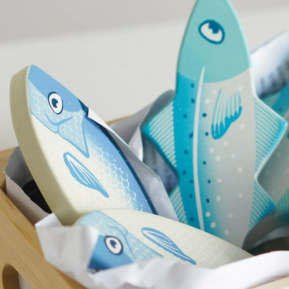 This Fresh Fish Crate from award winning children’s FSC wooden toy company Le Toy Van, features 6 painted wooden fish in a rustic wooden crate. Perfectly proportioned to fit the Honeybee Market Stall, (also available here at Cuckooland), this play food set will encourage your little one to get lost in the world of creative and imaginative play, either independently or with their friends. This Le Toy Van Honeybake Fresh Fish Crate would make a great gift for any child who enjoys playing role play games and the perfect accessory to add on to your Honeybee Market order.