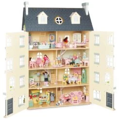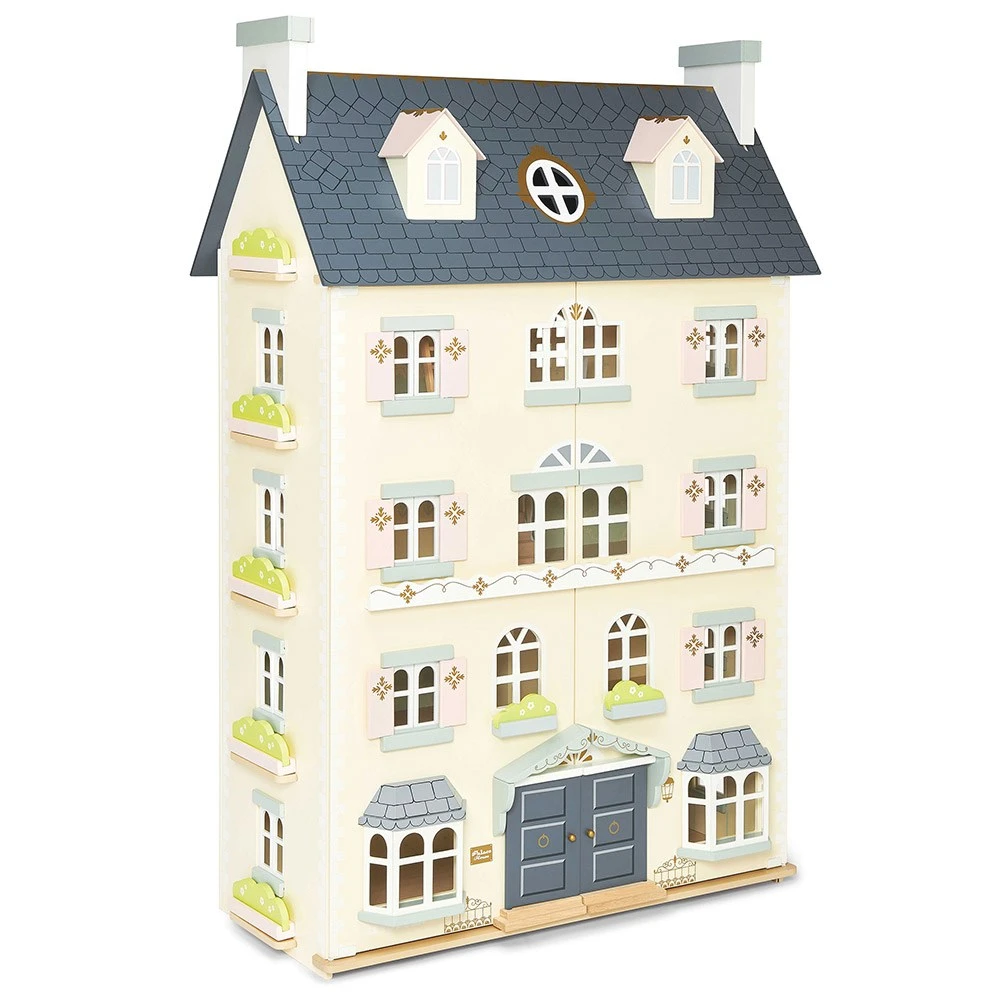 Over a metre tall; your little one’s are going to be blown away by the Le Toy Van FSC Wooden Palace Doll House! Featuring 4 separate levels all painted and decorated throughout, this jaw-dropping play set will provide hours of fun! Plus the roof can be removed to reveal a hidden level – perfect for storing extra accessories and toys! Featuring opening windows and doors, flower boxes and gold painted details this dollhouse mansion is certainly fit for royalty. Sized to be paired with the Le Toy Van Budkins figures, furniture accessories and toy cars, complete the set and encourage creative and imaginative play! Just don’t be surprised when you see the toilet in the kitchen… anything is possible!