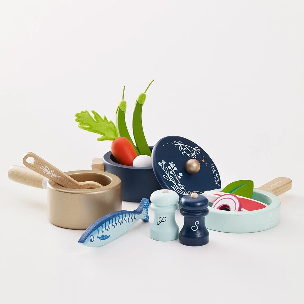 Le Toy Van Wooden Set of Pots & Pans for Play Kitchen