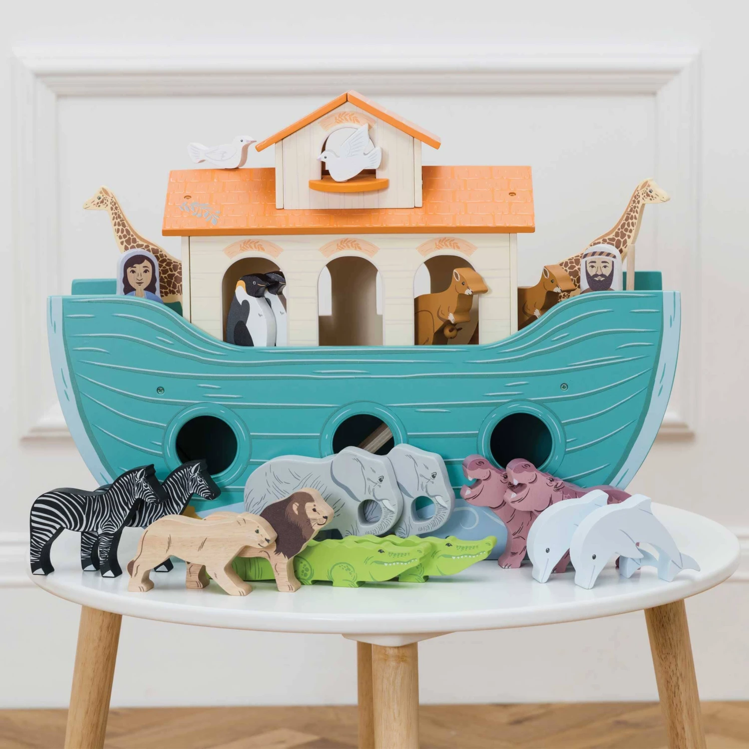 - Wooden Noah’s ark toy complete with 10 animal play pieces
